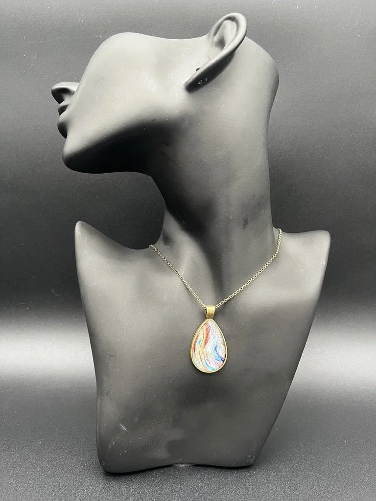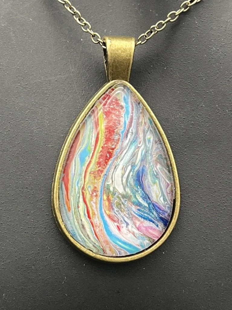Medium: Acrylic paint, resin, glass. Nickel-free and lead-free alloy bail.