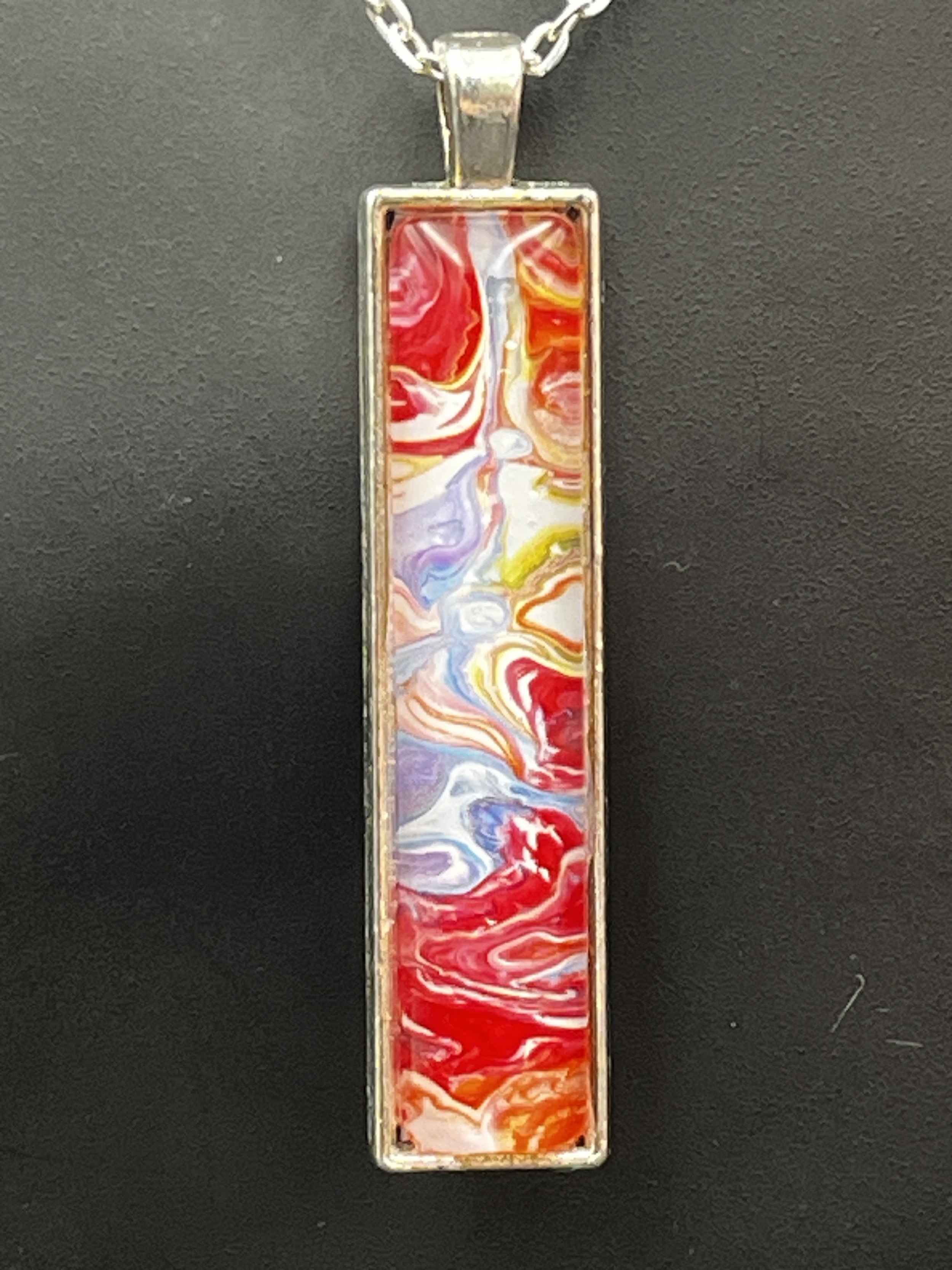 Medium: Acrylic paint, resin, glass. Nickel-free and lead-free alloy bail.