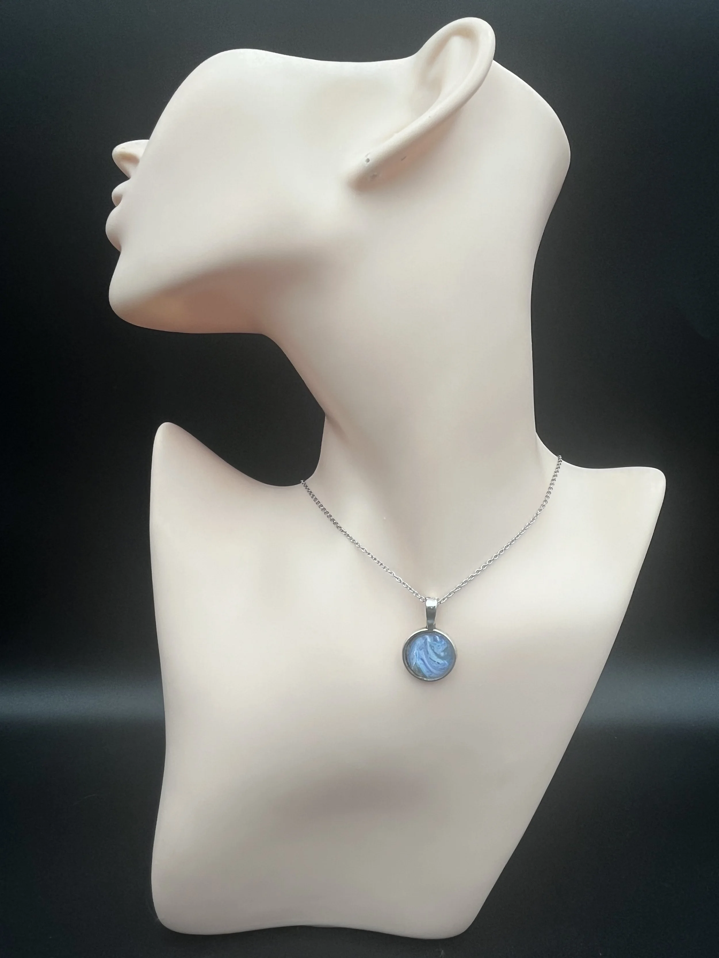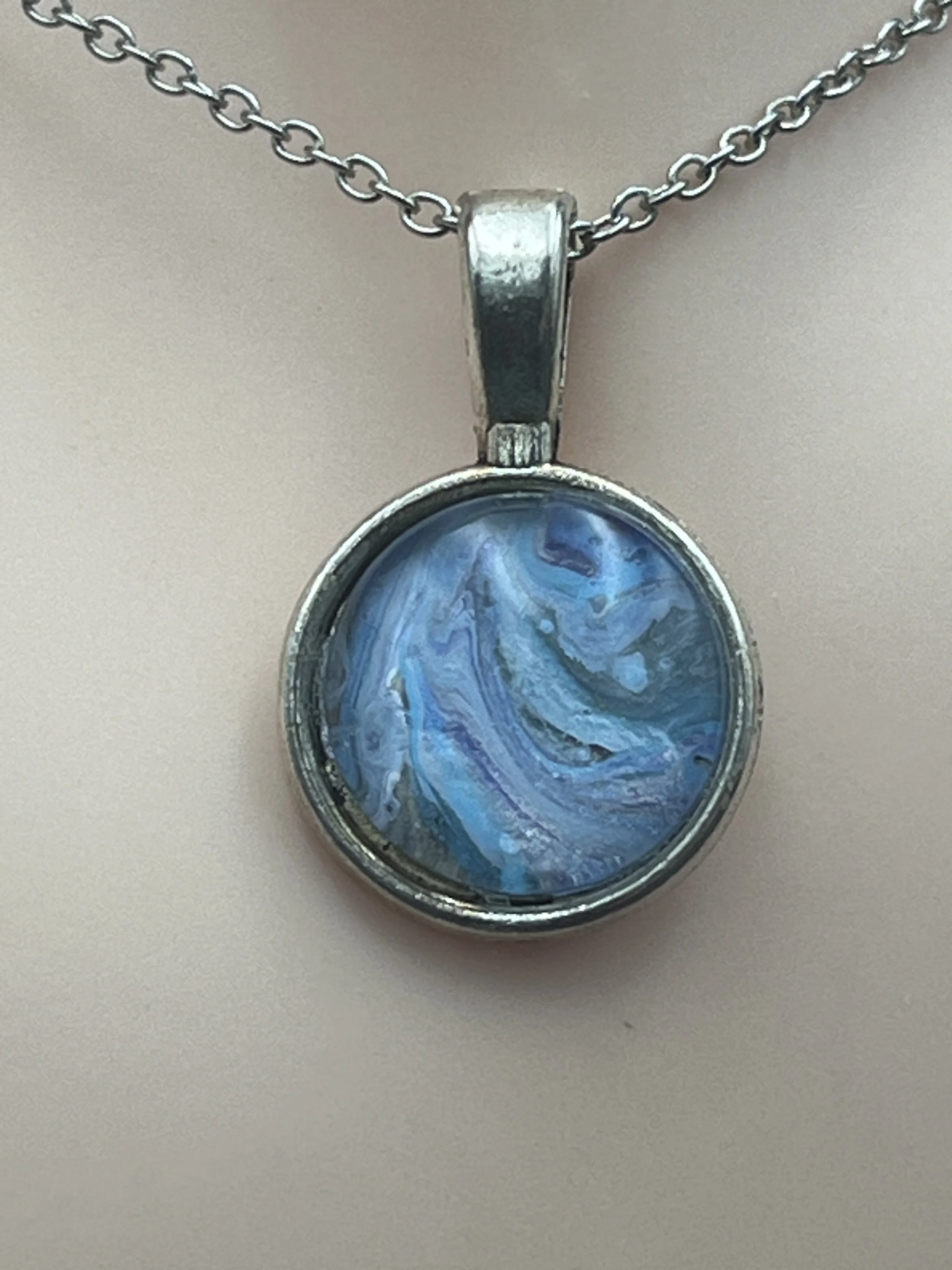 Medium: Acrylic paint, resin, glass. Nickel-free and lead-free alloy bail.