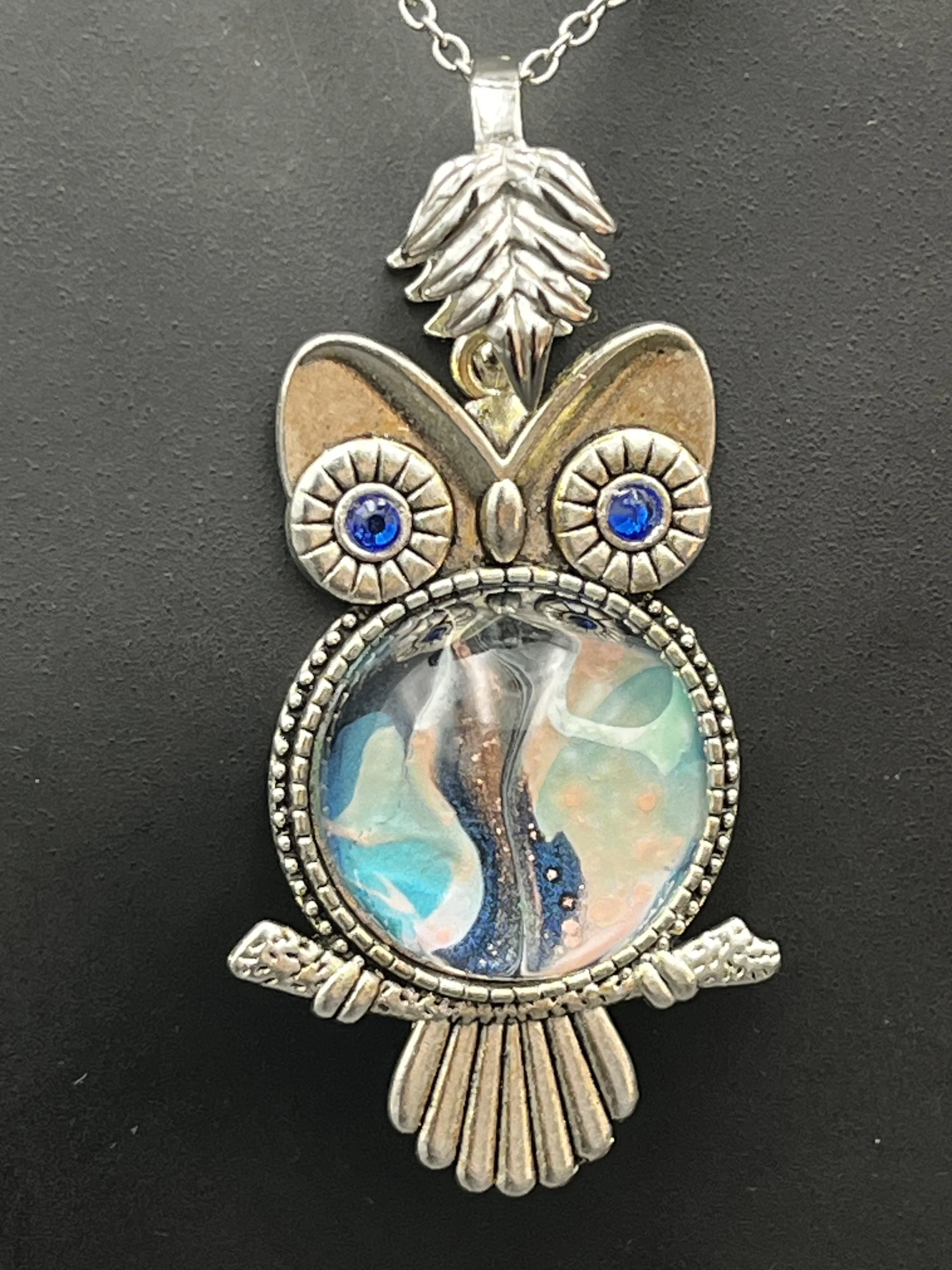 Medium: Acrylic paint, glass, resin. Nickel-free and lead-free alloy bail.