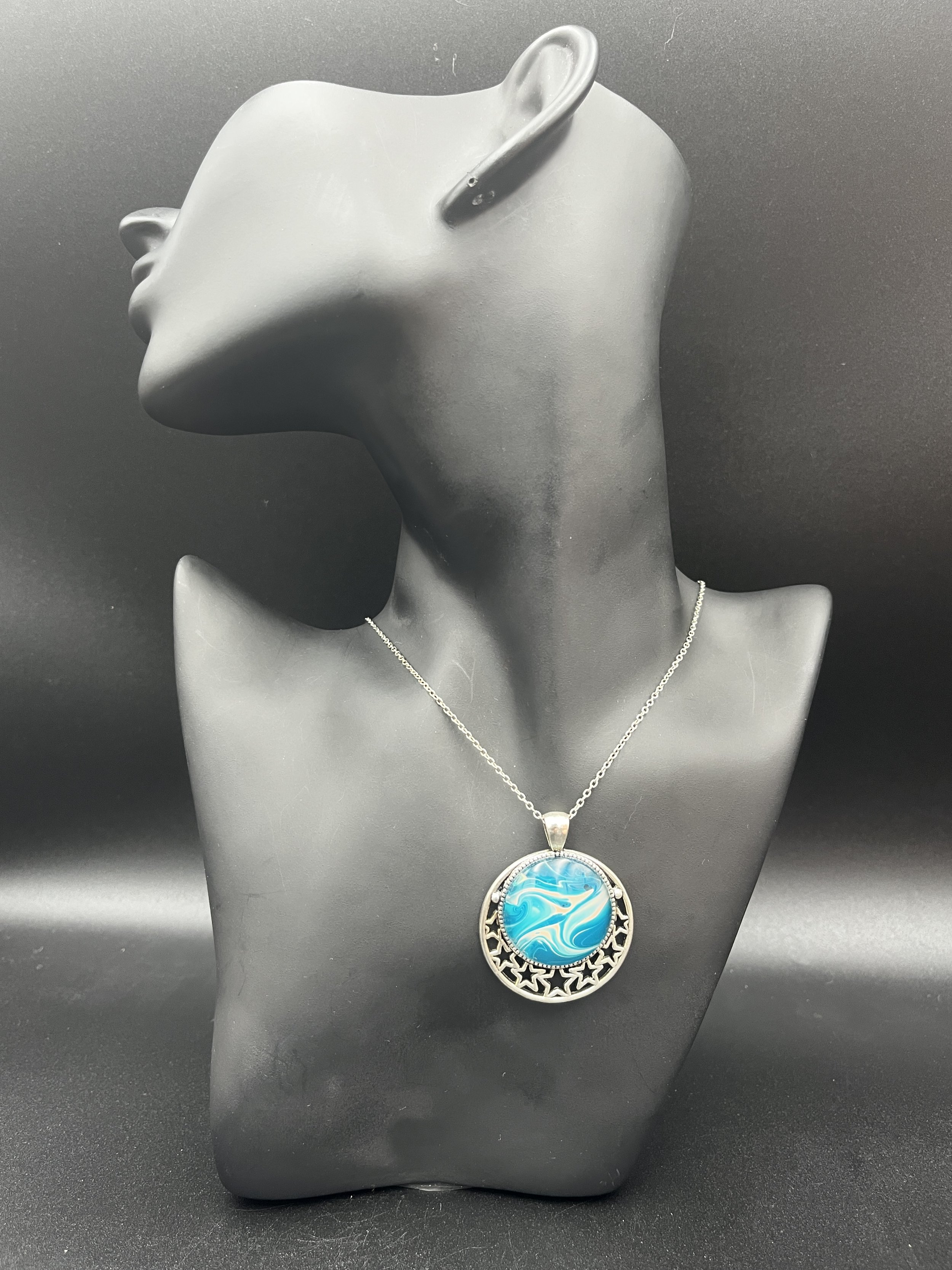 Medium: Acrylic paint, resin, glass. Nickel-free and lead-free alloy bail.