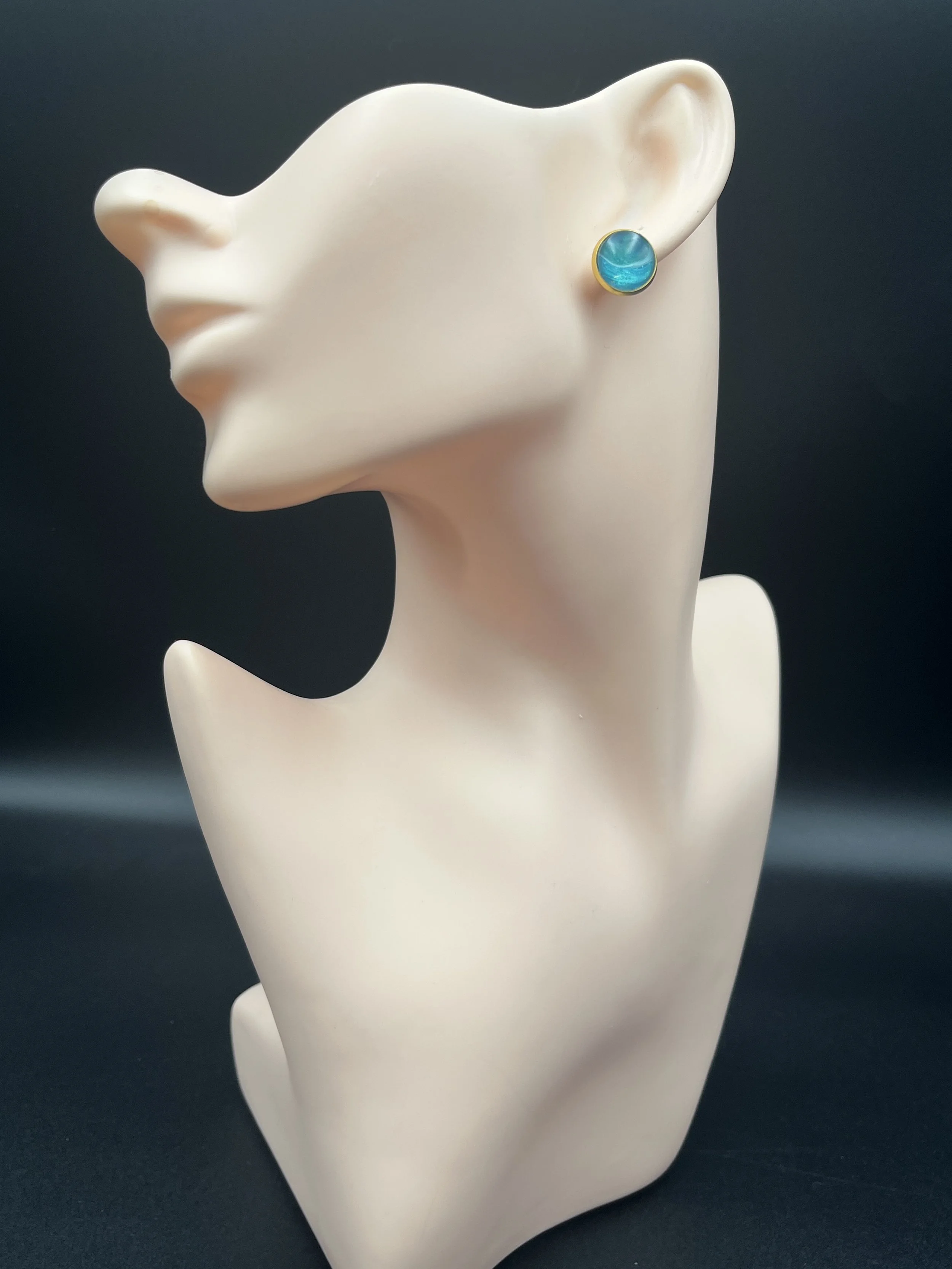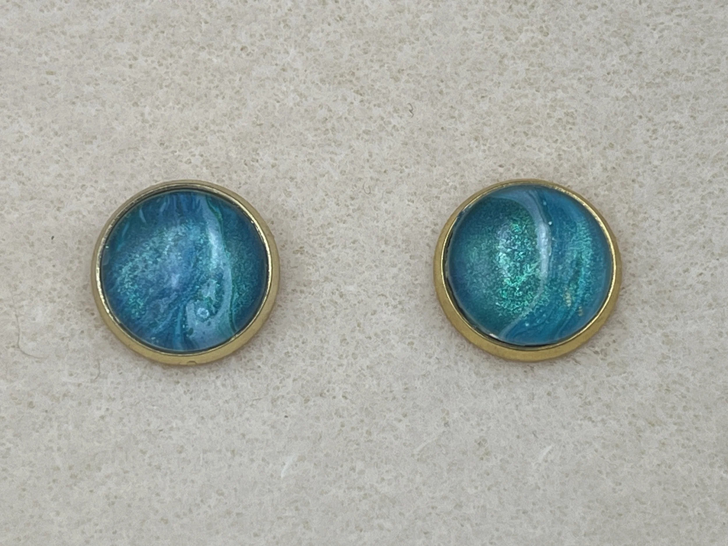 Small, delicate studs featuring a beautiful iridescent blend of teal and shimmering gold.
