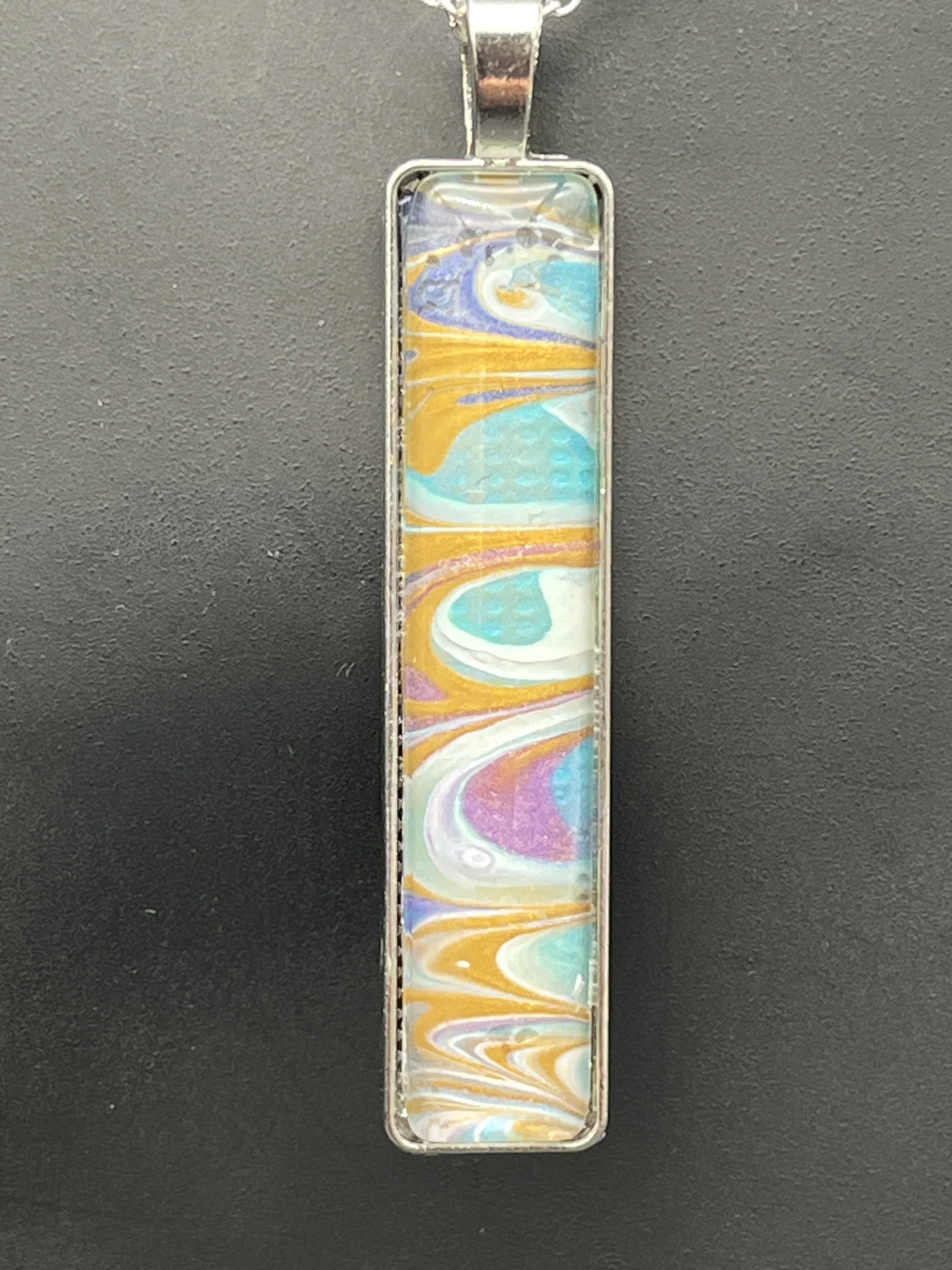 Medium: Acrylic paint, resin, glass. Nickel-free and lead-free alloy bail.