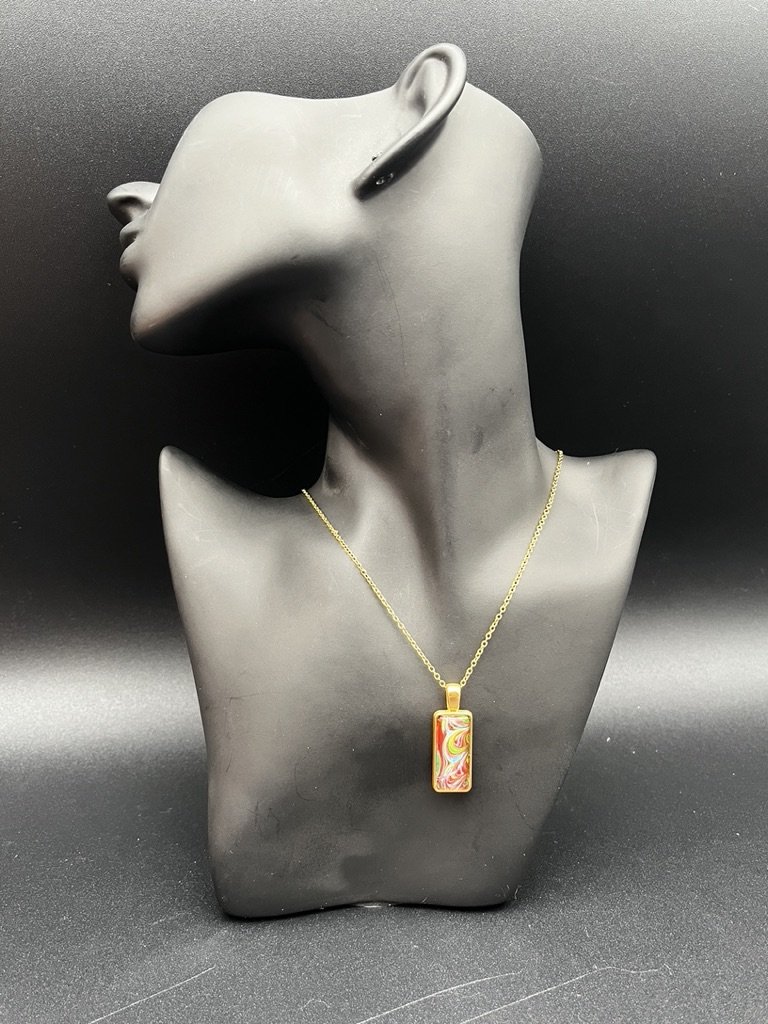 Medium: Acrylic paint, resin, glass. Nickel-free and lead-free alloy bail.